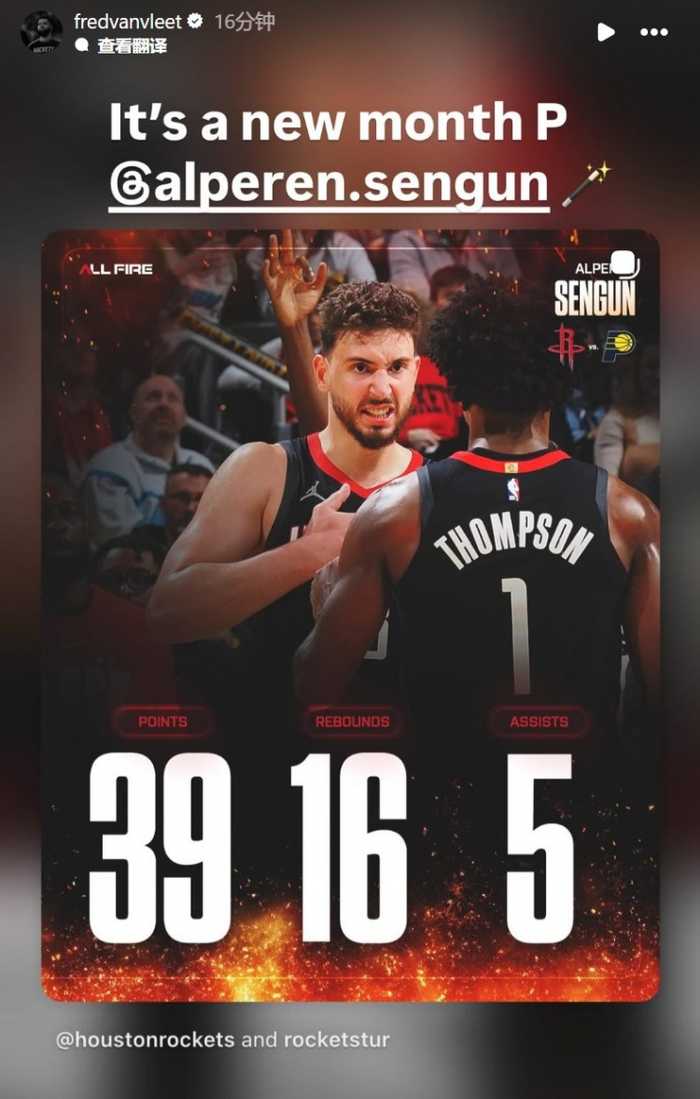 赛后,范弗里特转发申京数据海报,并写道:“新的一个月了。”