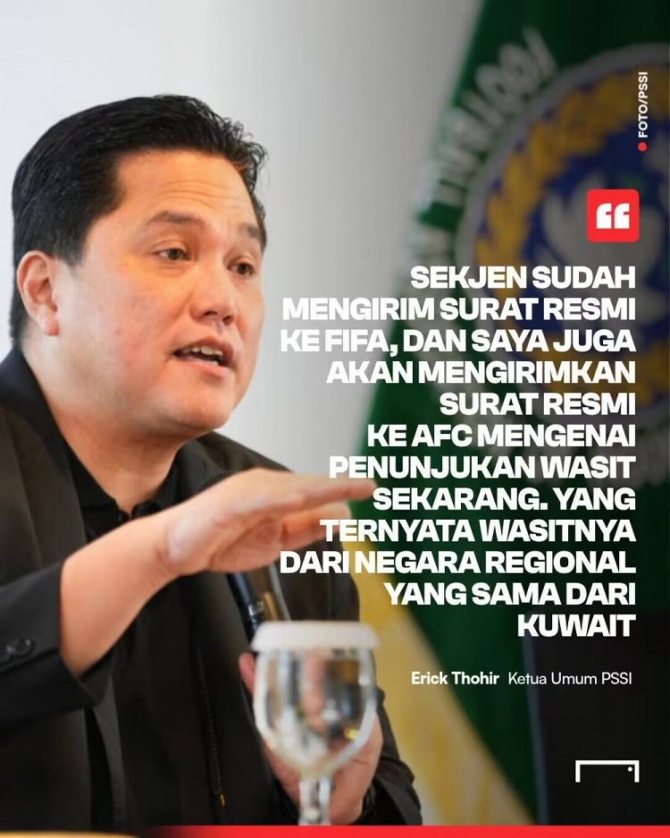 印尼足协主席托希尔表示,同是来自西亚的科威特裁判可能会影响比赛吹罚的公正性,在这一轮世预赛亚洲区比赛中,印尼是唯一一支非中东地区的球队,其他五支球队分别是沙特、伊拉克、卡塔尔、阿曼以及阿联酋。